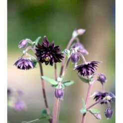 Maj-juli. Elegante, nikkende, stærkt fyldte sortlilla blomster.