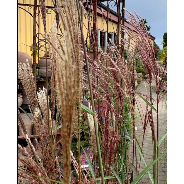 Gammelrosa til brunligt rosa aks dannes i august-september og folder sig senere ud som sølvhvide vifter eller fjer. Står smukt vinteren igennen.
