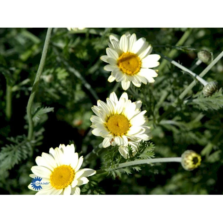 Juli-august. Margueritlignende flødegule blomster med mørkegul midte. Meget rigt blomstrende.