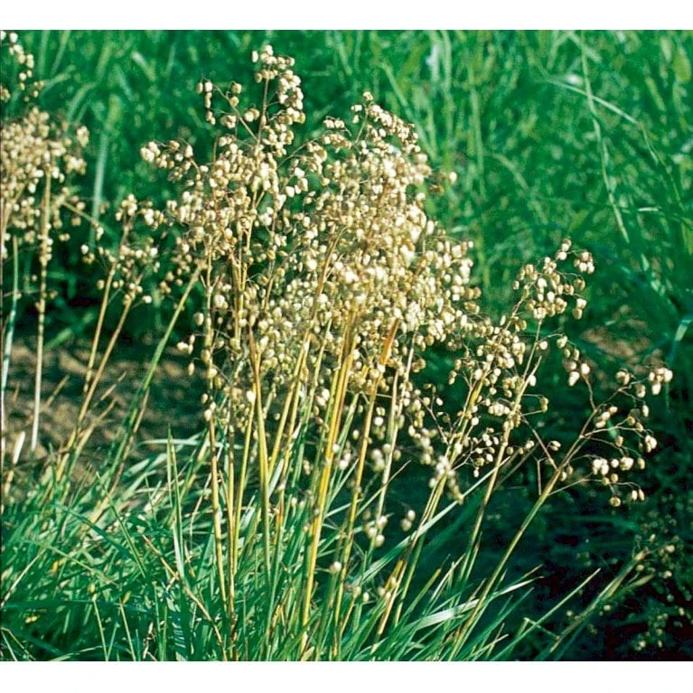 Maj-august. Fine, små hjerteformede frøstande, samlet mange sammen i hvert aks.