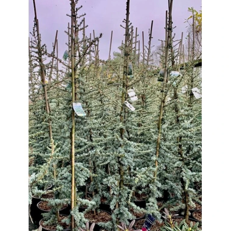 Ceder ynder læ og en veldrænet jord. Bør plantes på en lys eller halvskygget vokseplads, hvor nålene også bliver klarest blå.