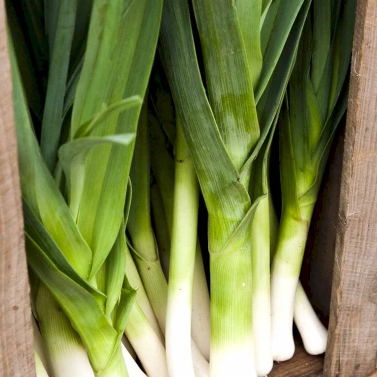 August-oktober. Let dyrkelige porre med tyk hals og mørkegrønne blade.