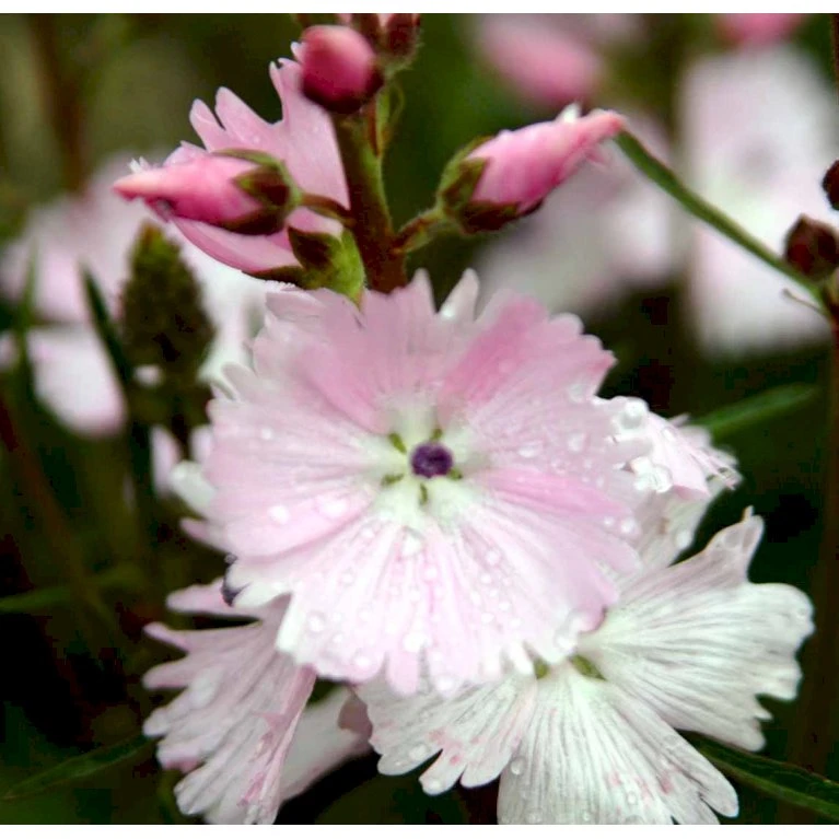 Ynder en solrig plads i din have. Smukke, krystallyserøde silkekatoste med små lilla støvdragere.